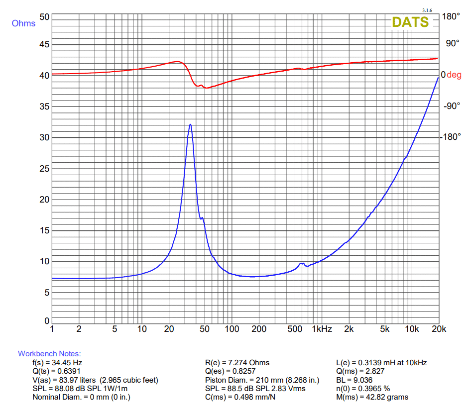 - Nominal impedance: 8